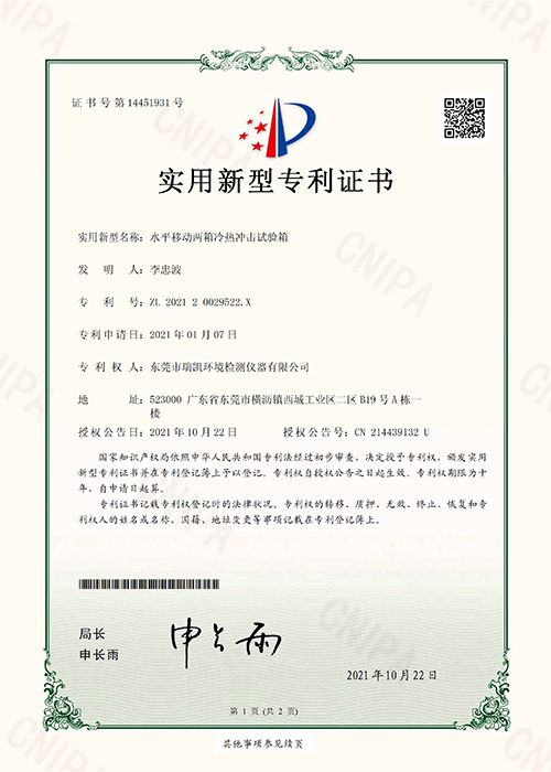 瑞凱儀器-恒溫恒濕試驗(yàn)箱證書(shū)